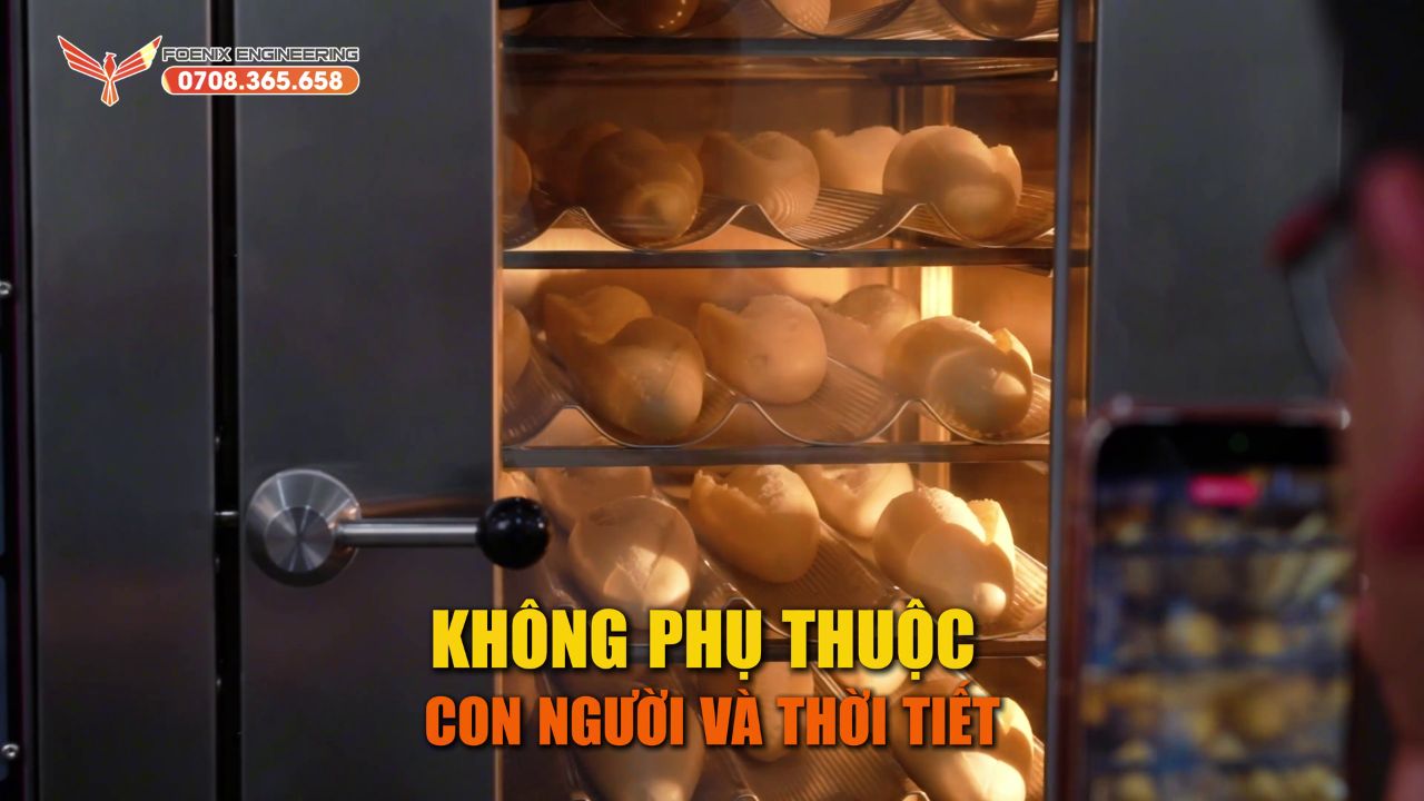 Ưu điểm nổi bật nhất của dòng tủ ủ chu trình FOENIX giúp anh em chủ tiệm không phụ thuộc vào nhân công, không phụ thuộc thời tiết. Anh em hoàn toàn tự chủ được thời gian sản xuất.