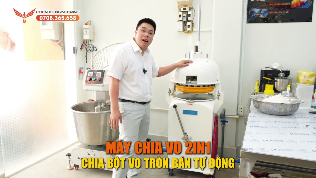 Trong công nghệ làm bánh mì không thức đêm, anh em có thể ứng dụng máy chia vo 2in1 bán tự động rất tiện lợi và dễ sử dụng.