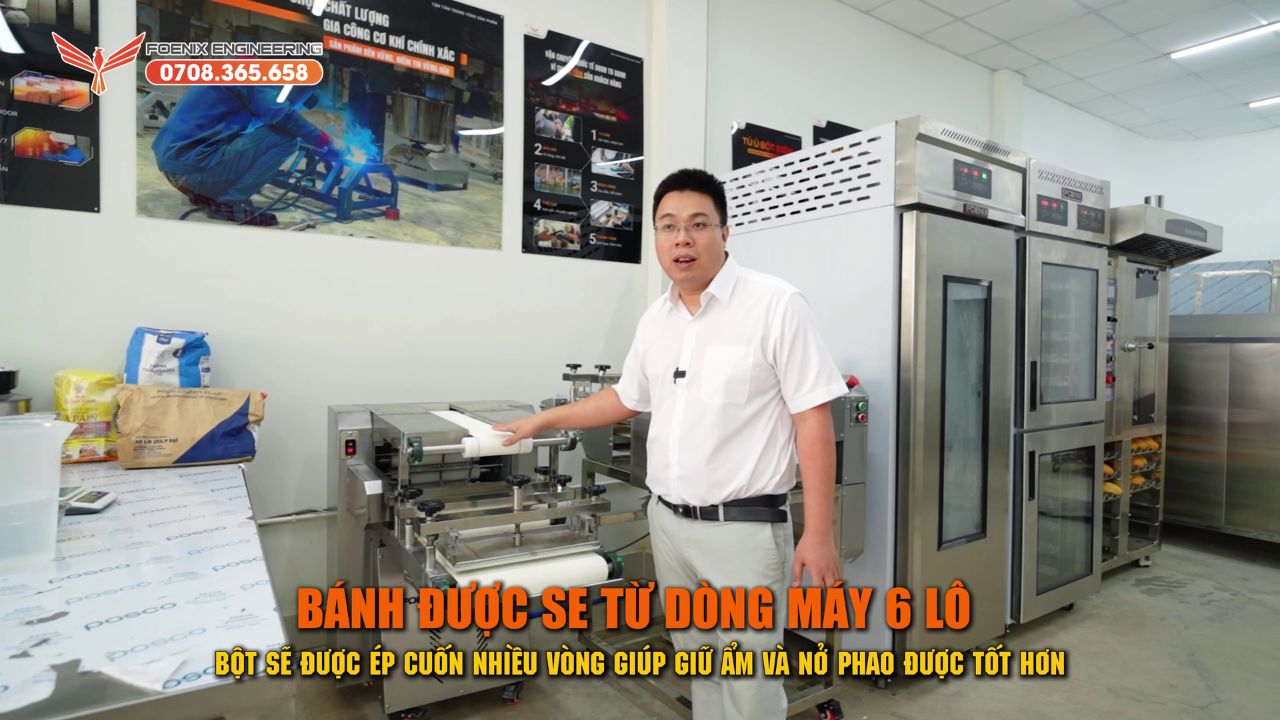 Ưu điểm nổi bật của máy se FOENIX trong quy trình ủ bánh dài giờ là bánh được ép cuốn nhiều vòng qua 6 trục lô. Từ đó giúp bánh mì được giữ ẩm và nở phao tốt hơn.