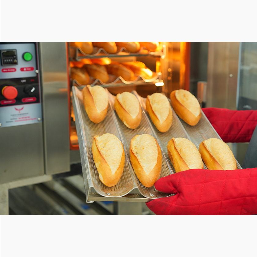 - Hệ thống tạo hơi nước bên trong tự động để nướng bánh mì chuẩn Việt Nam, hoàn hảo cho lớp vỏ mỏng, giòn, ruột xốp, bóng vàng cánh gián, nứt da quy.